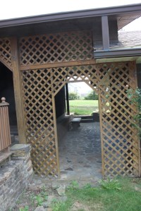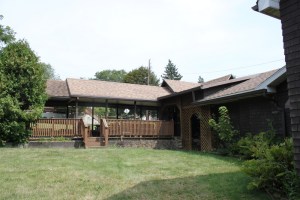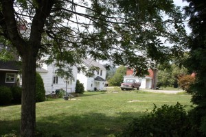 This is the view of our house from the back street-the only street that gives access to the house.  You cannot see our house from here-the building that you see just to the left of the patio is a separate office building that we plan to eventually turn into a guest cottage.  It is in need of much repair and we only use it for storage right now. (This was the town’s tax collectors office.)