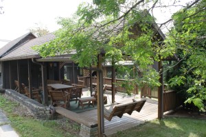 The back porch is a beautiful flagstone patio area.  It is always shaded and such a nice place in the heat of summer.
