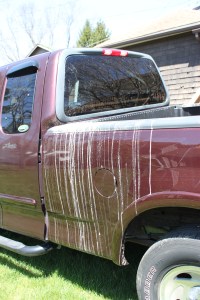 Husband has a truck he is selling and had it parked in the yard so he could work on detailing it.  This is what we would find every morning….