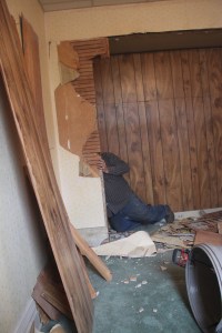 The first job was to remove what we didn’t want. There was a closet the full width on one side of the room-this would become the bed alcove and with it removed it would make the room less awkward and easier to navigate around.
