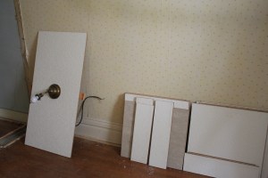 Some pictures of the lath and plaster walls with layers of old wall paper.