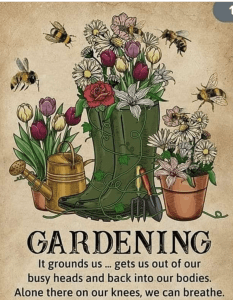Gardening can give you a nice exercise work-out. Gardening is not work free, it does involve some physical labor. Bending, stretching, lifting, all activities that get you moving if you choose to garden. You can soak up lots of Vitamin D from the sun as you garden.