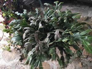 One is the Christmas Cactus.  It is really a Thanksgiving Cactus, as soon as I bring it into the warm house, it begins setting its blossoms and should be in full bloom in a few weeks.  It is a very forgiving plant and survives just fine outside in the summer and also does well inside during the winter.
