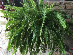 I love ferns, and try to keep this one from year to year-it is a challenge as it does not like the dry heat of the house. By the time late spring arrives, it is barely surviving.  It recovered nicely this summer, but I am expecting it to suffer in the house again this winter.